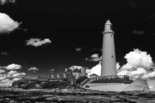 St Marys Lighthouse Black and White Print Only © Claire Louise Photography